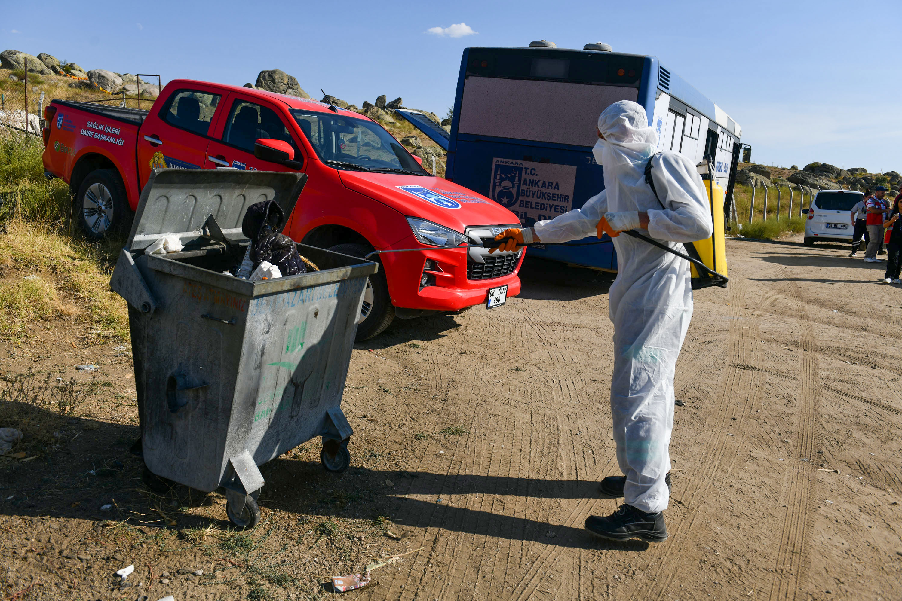 Sağlık İşleri Daire Başkanlığı, Polatlı ve Beypazarı Ziraat Odası iş birliğiyle Polatlı ve Beypazarında konaklayan mevsimlik tarım işçilerine hijyen hizmetinde bulunuyor.
