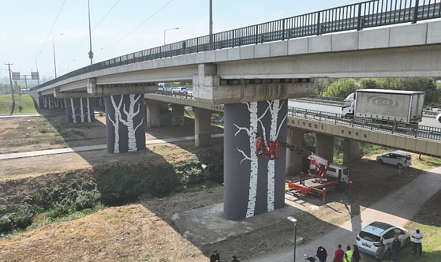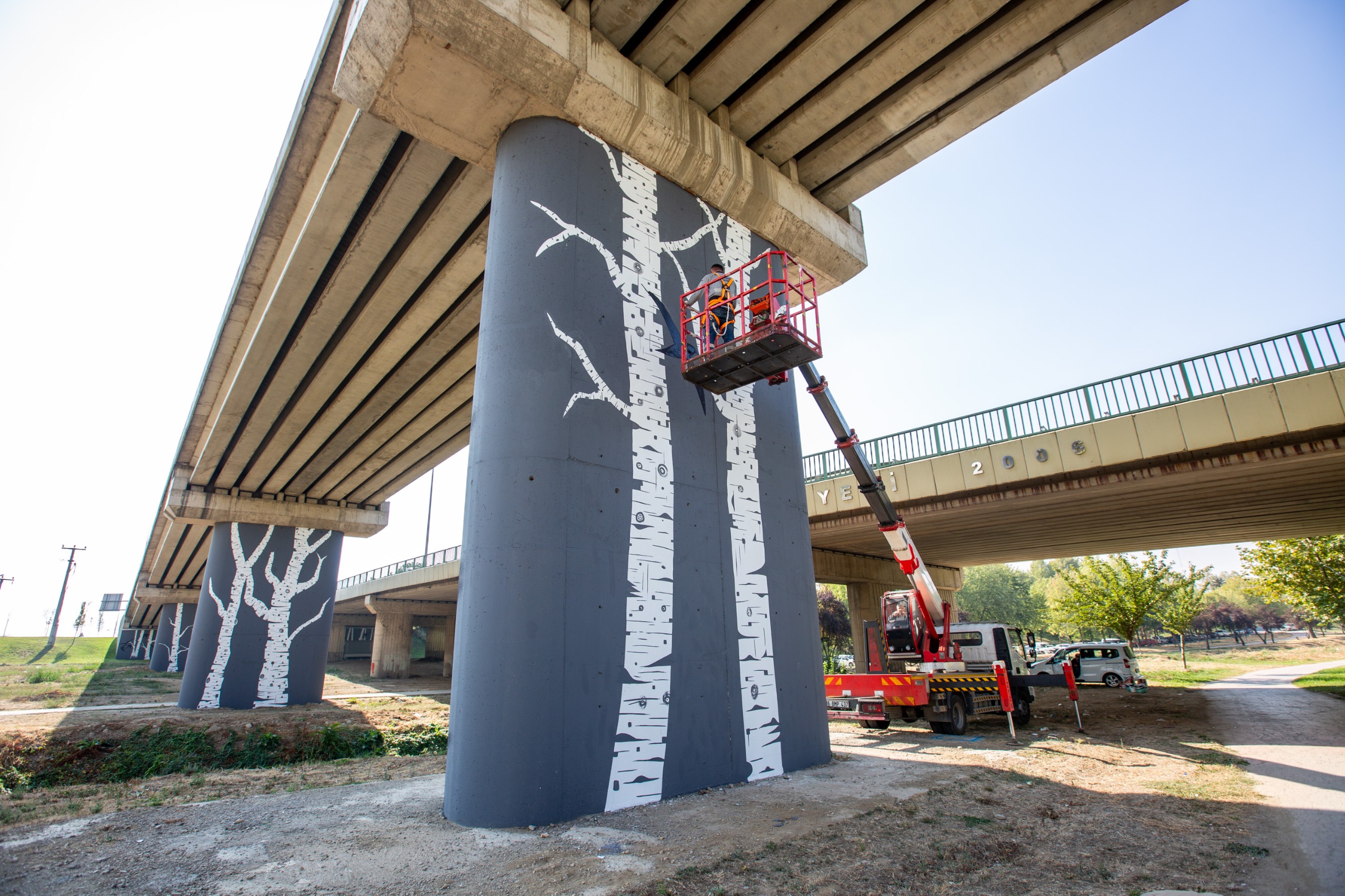 BUSKİ Avrupa Konseyi Bulvarı bağlantı kavşağındaki köprü ayakları, modern kentsel sanat anlayışıyla “huş ağacı” motifiyle tasarlandı. Beş köprü ayağı ve iki duvar üzerinde yapılan uygulama, bölgeyi hem estetik açıdan güzelleştirdi hem de trafik yoğunluğu olan bir alana görsel ferahlık kazandırdı.
