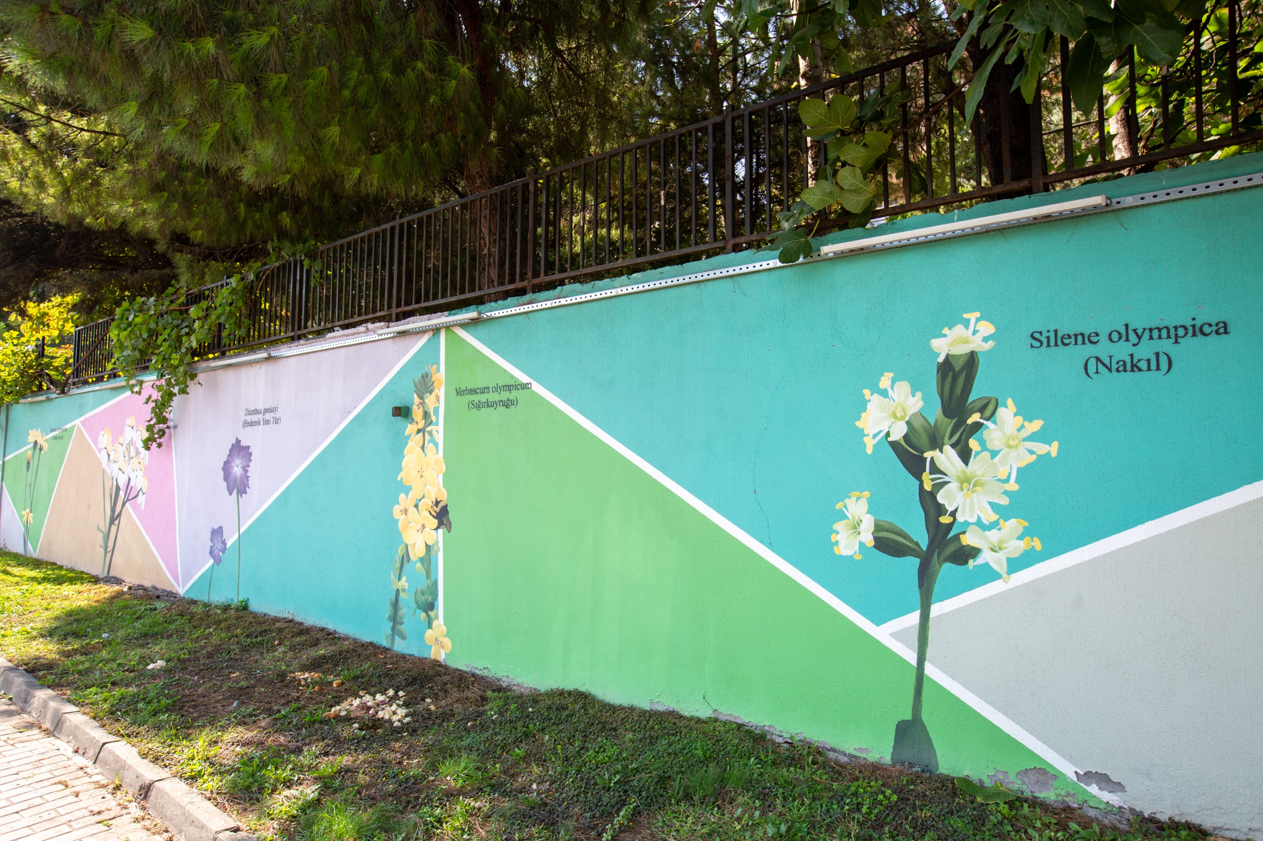 Demirtaşpaşa Köprülü Kavşağı altındaki 570 metrekarelik alan, belediye ressamlarının fırçalarıyla orman siluetlerine ve Uludağ’da yetişen endemik bitkilere ev sahipliği yapıyor. Daha önce Sırameşeler bölgesinde uygulanan benzer çalışmayla bütünlük sağlayan bitki motifleri, Uludağ’ın eşsiz doğasını şehir merkezine taşıdı.