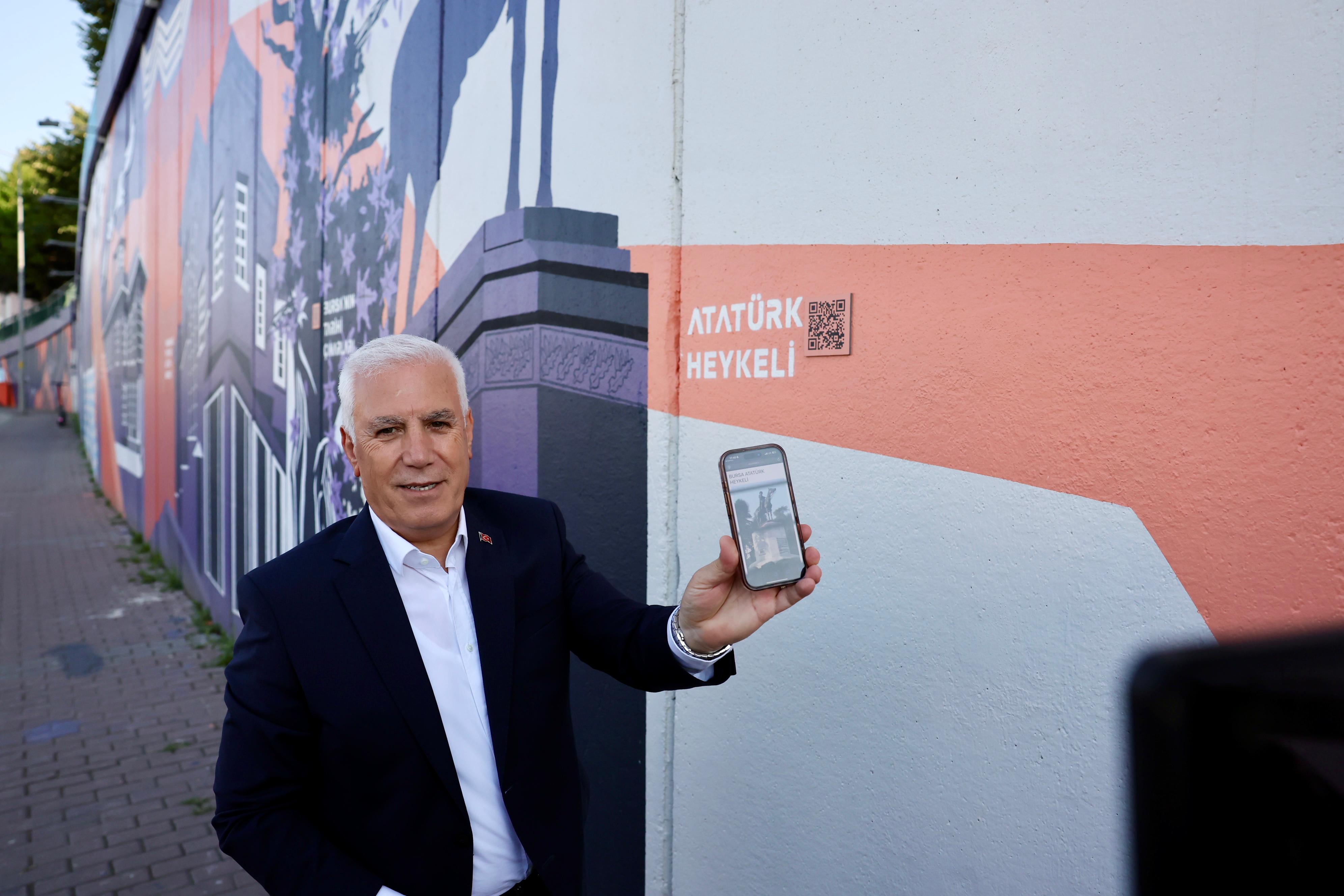 Kültürpark’ın kuzey duvarında çok anlamlı bir çalışmaya imza atıldığını söyleyen Başkan Mustafa Bozbey, Bursa’ya ait değerlerin 1000 metrekarelik alana sahip olan duvara işlendiğini belirtti. Tarihi Belediye Binası’ndan Irgandı Köprüsü’ne kadar birçok eserin resmedildiğini ifade eden Başkan Bozbey, “Bursa’nın değerlerini, kente gelen misafirlerimize tanıtma noktasında kentin farklı noktalarında duvar sanatı projeleri başlattık. Yapılan eserlerin altında QR kodları da yer alıyor. İsteyen herkes bu kodu telefonunda okutarak resmedilen tarihi eserin bilgilerini Türkçe ve İngilizce öğrenebiliyor. Bu çalışmayla Bursa’nın tanıtımına önemli bir katkı sağlamış oluyoruz. Emeği geçenlere teşekkür ediyorum” dedi.
