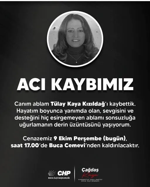 "Canım ablam Tülay Kaya Kızıldağ'ı kaybettik. Hayatım boyunca yanımda olan,