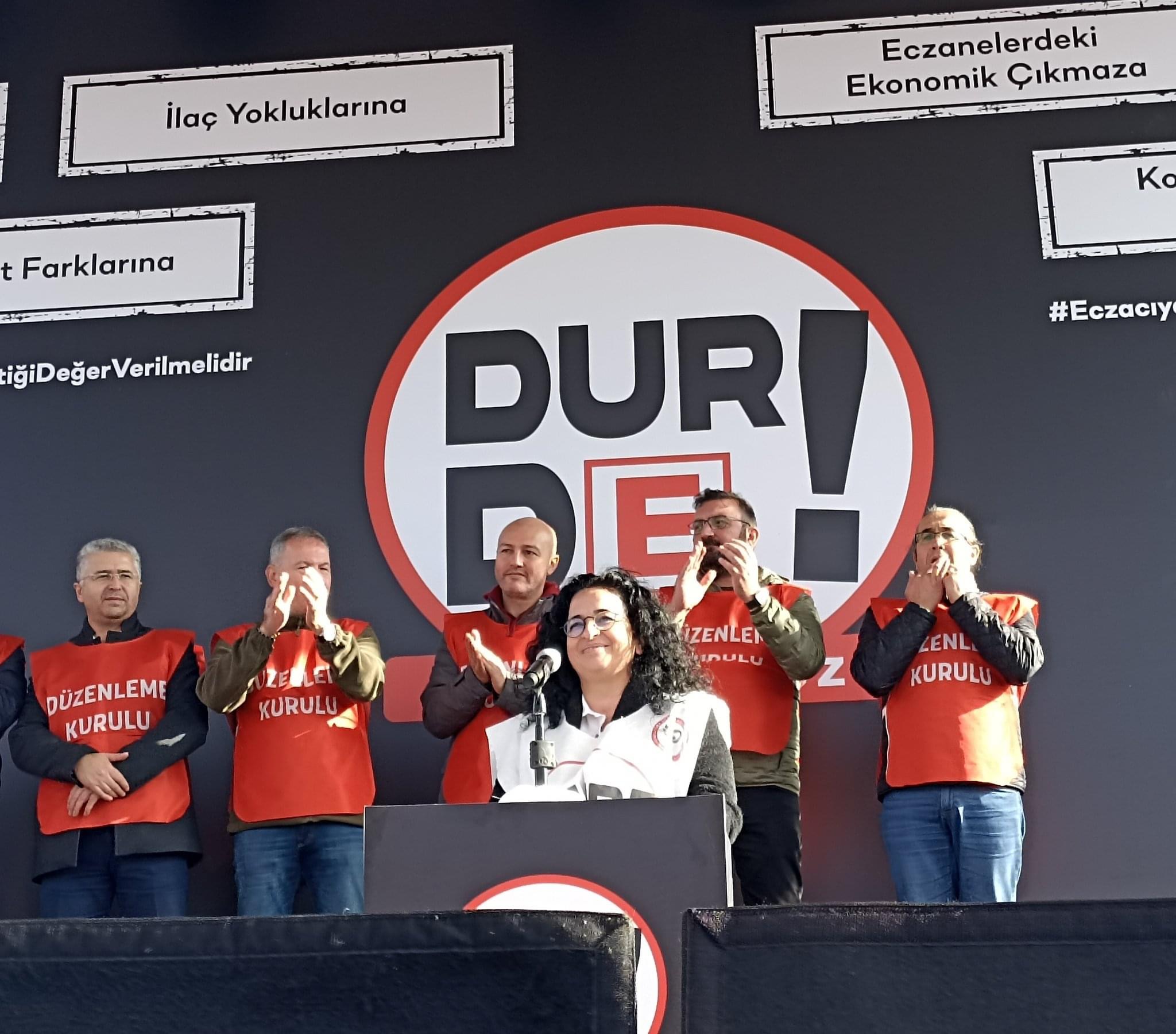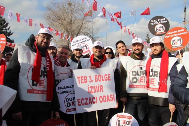 Açıklamada, eylemlilik kararında miting ve eczane kapatmanın da yer alacağı belirtilirken, Türk Eczacıları Birliği Merkez Heyeti'ne de tepki gösterildi.