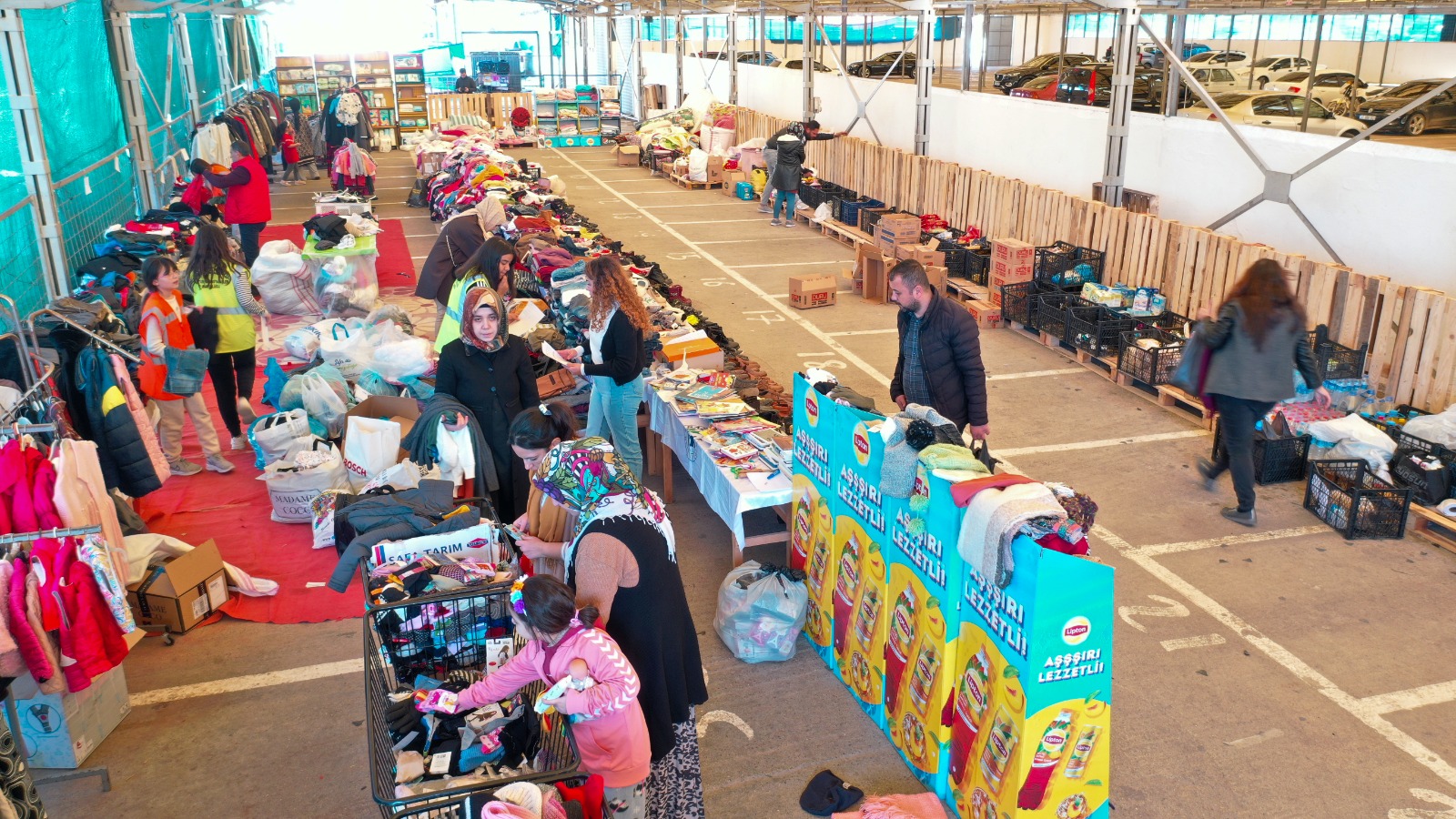 Belediye Fuar alanında kurulan sosyal market ve butik hizmet vermeye devam ediyor. Gönüllü vatandaşların yardımları ile depremzedelerin ihtiyaçları karşılanması için çalışmalarını sürdüren Gazipaşa Belediyesi ekipleri, her geçen gün güncellenen ihtiyaç listesine göre yardımları kabul etmeye ve depremzedelere ulaştırılmaya devam edecek.