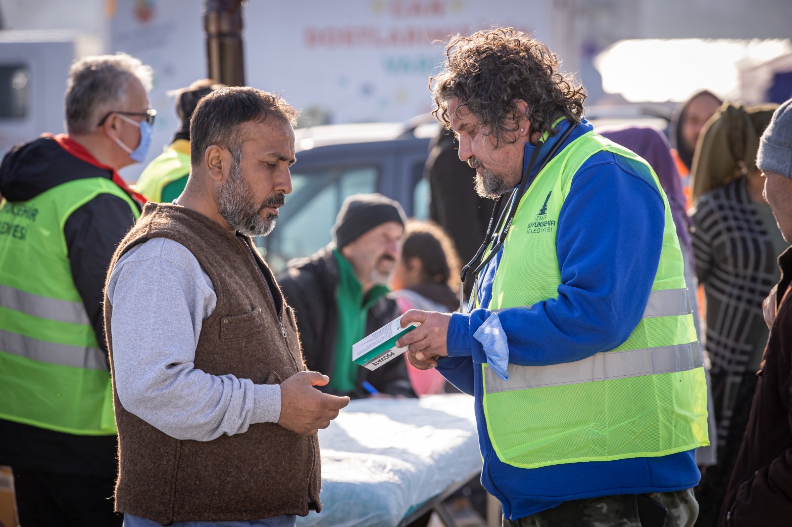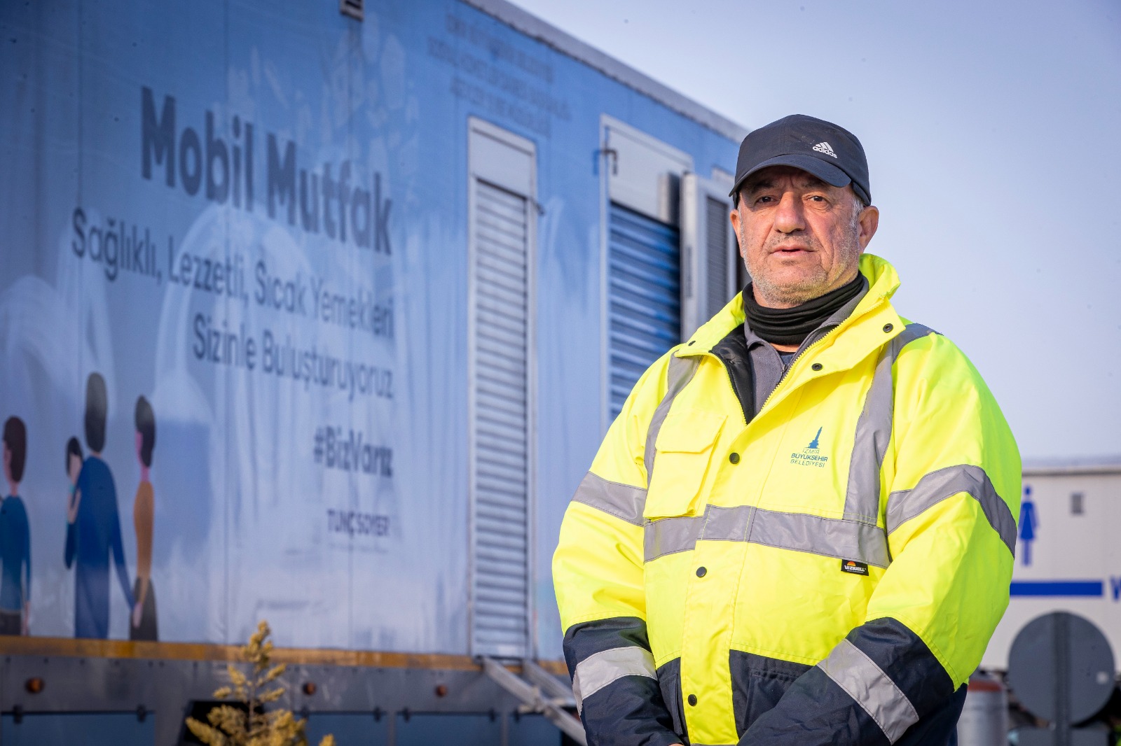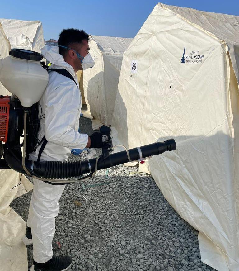 Afet bölgesinde kurulan merkezlerin koordinasyonu sağlayan İzmir Büyükşehir Belediyesi Genel Sekreter Yardımcısı Ertuğrul Tugay, çalışmalar hakkında bilgi verdi. Tugay, Depremin ilk anından itibaren başkanımız Tunç Soyerin koordinasyon toplantısında aldığı kararlar doğrultusunda görevlendirmelerimizi yaptık. Bizim bir İzmir depremi deneyimimiz olduğu için çok kısa sürede reaksiyon gösterdik. Hemen itfaiye ekiplerimiz ve arama kurtarma birimlerimizin dışında da mobil mutfaklarımız yola çıktı. İkinci günden itibaren burada hizmet vermeye başladık. Yaklaşık 10 bin kişilik yemek aracımızla sabah, öğle, akşam yemeklerimizi depremzedelerimize ulaştırıyoruz. Biz Hatayda 26 dönümlük arazi üzerine, bir çadır kent kurduk. Burada aslında bu kadar bir alanımız yoktu ama kendimiz de fen işleri ekiplerimizin iş makineleriyle büyüterek bu alana ulaştık. Şu an 177 çadırda bin 367 depremzedemiz konaklıyor diye konuştu.