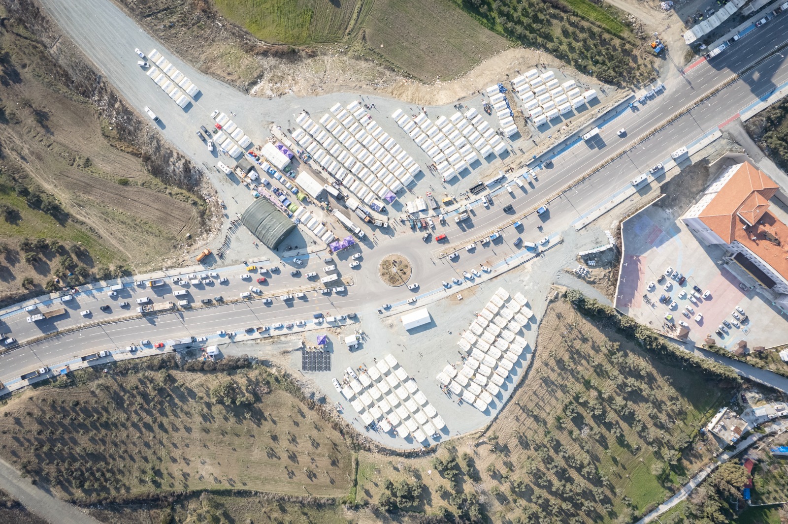 Hatay Expo yolu üzerinde çadır kent kurarak depremzedelere barınma imkanı sunan İzmir Büyükşehir Belediyesi burada yardımların ulaştırıldığı bir lojistik merkez, mobil mutfak, çocuk oyun alanı, tuvalet, banyo, Eşrefpaşa Hastanesi reviri, fen işleri atölyesi, bakım onarım istasyonu, internet noktası gibi çok sayıda birimi hizmete aldı.