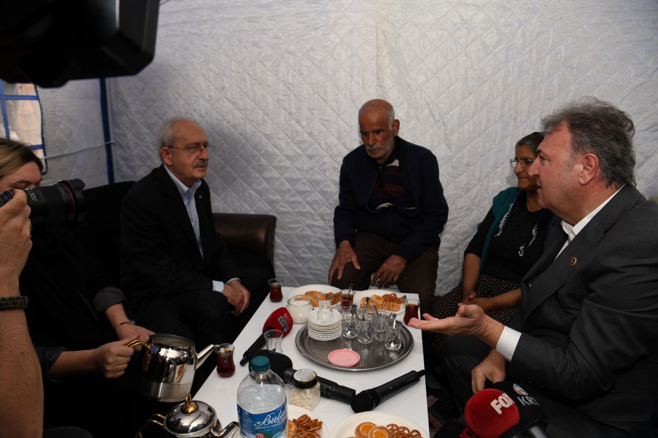 CHP Genel Başkanı ve Millet İttifakı'nın Cumhurbaşkanı Adayı Kemal Kılıçdaroğlu da, bütün belediye başkanlarıyla deprem yaralarını sarmak için var güçleriyle çalıştıklarını belirterek, "Türkiye'nin çözülemeyecek hiçbir sorunu yok. Tüm sorunların üstesinden birlik ve beraberlik içinde geleceğiz. Bugün de deprem bölgesinde aynı şeyi yapıyoruz. Tüm başkanlarımızla sahadayız. Türkiye'nin dört bir yanından belediyelerimizle 11 ilimizdeki vatandaşlarımızın yanındayız, yanlarında olmaya da devam edeceğiz" diye konuştu.