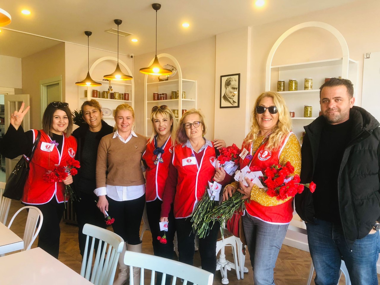 KADINLARA ÇİÇEK TAKDİM ETTİLER