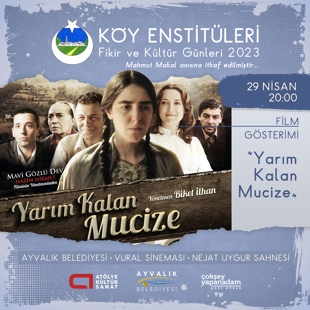 Atölye Kültür Sanat organizasyonu ve Ayvalık Belediyesi'nin ev sahipliğinde düzenlenecek olan etkinlikte bu yıl yine panel, söyleşiler ve tematik film gösterimi üç gün boyunca Ayvalık Belediyesi Vural Sineması Nejat Uygur Sahnesi'nde yapılacak. 28 Nisan'da Köy Enstitüsü araştırmacısı yazar Hayrettin Filiz moderatörlüğünde gazeteciler Sedef Kabaş, Yaşar Aydın ve Siyaset Bilimci Dr. Ali Mert Taşcıer'in konuşmacı olarak katılacağı "Köy Enstitüleri Aydınlığından Günümüz Karanlığına" başlıklı panel düzenlenecek. 29 Nisan günü saat 16.00'da ise Tarihçi-Yazar Sinan Meydan, "Kuruluşundan, kapatılışına Köy Enstitüleri" başlıklı söyleşisi ile tarihi gerçekleri bir kez daha gözler önüne serecek. Aynı gün akşamında saat 20.00'de Köy Enstitüleri'ni en iyi anlatan filmlerden biri olan "Yarım Kalan Mucize" filmi ücretsiz olarak gösterime sunulacak. Son olarak 30 Nisan günü saat 16.00'da Toplum Bilimci, yazar ve Akademisyen Prof. Dr. Emre Kongar "Köy Enstitüleri'nin Toplumsal Yansımaları" adlı söyleşi ve sonrasında kitap imzası ile Ayvalıklılar ile buluşacak.