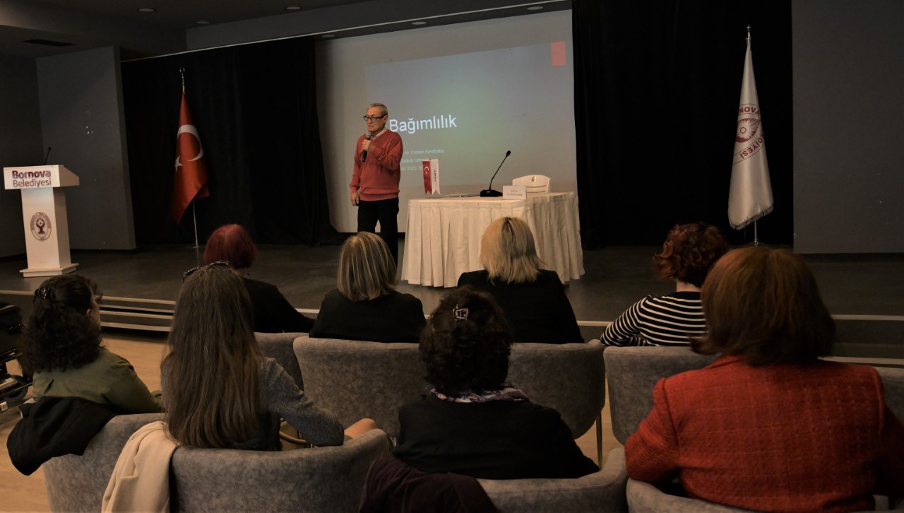 Bornovalılardan yoğun ilgi gören panele katılan Bornova Belediye Başkan Yardımcısı Barbaros Taşer, Prof. Dr. Ali Osman Karababaya çiçek vererek teşekkür etti.