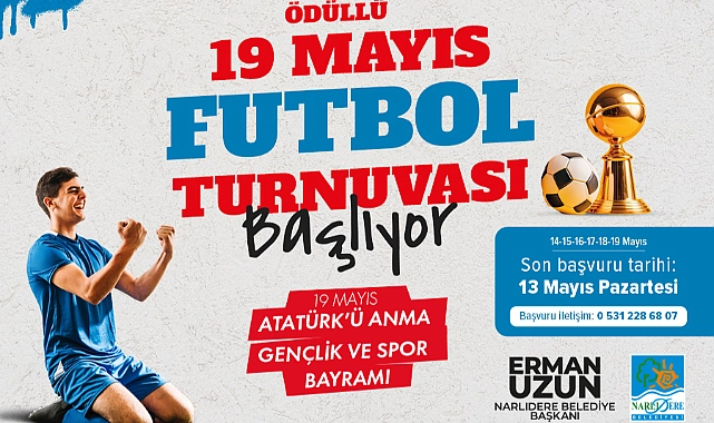 Narlıdere Belediyesi, 19 Mayıs Atatürk’ü Anma Gençlik ve Spor Bayramı etkinlikleri kapsamında ‘19 Mayıs Futbol Turnuvası’ düzenliyor. 14–19 Mayıs tarihleri arasında gerçekleştirilecek turnuvaya başvurular 13 Mayıs Pazartesi gününe kadar devam edecek. Bu yıl birincisi düzenlenen ve geleneksel hale getirilecek turnuvada ilk 3’e girecek takımlara çeşitli ödüller verilecek. Narlıdere Belediyesi Ali Artuner Stadı’nda oynanacak müsabakalar öncesinde, 13 Mayıs Pazartesi Günü Belediye Meclis Salonu’nda kura çekimi gerçekleştirilecek.