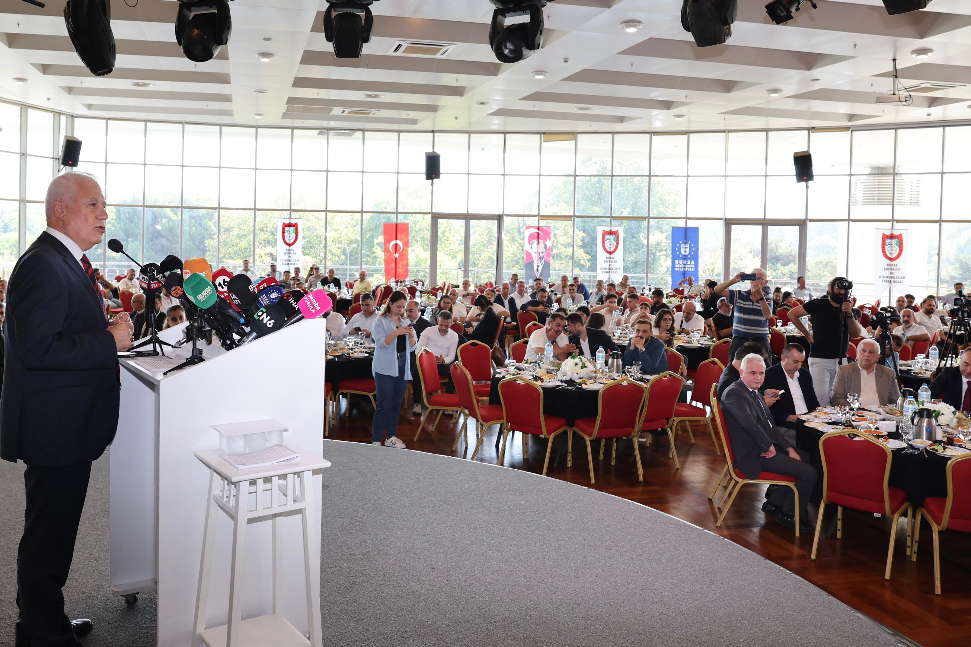 İlkokulu, ortaokulu, liseyi ve üniversiteyi taksici ve dolmuşçu bir esnafın kazandığı paralarla okuduğunu ve bitirdiğini hatırlatan Büyükşehir Belediye Başkanı Mustafa Bozbey, rahmetli babasının ve kardeşlerinin yıllarca taksi ve dolmuş esnafının arasında yer aldığını dile getirdi. Taksi ve dolmuşçu esnafının neler çektiğini, yaşadığı zahmetleri çok iyi bildiğini söyleyen Başkan Mustafa Bozbey, “Aslında bu projeyi, Nilüfer’de olan esnafımız bilir. Orada mahalle bazında durak sistemi başlatmıştık. Atılan adımlarla projeyi geliştirdik ve Vira Bismillah diyoruz. Oda başkanımızı ve yönetimini kutluyorum. Çok önemli bir proje. Biz her zaman esnafın yanındayız. Hiç kimse bizi esnaftan uzak tutamaz. Her konuda esnafımızla birlikte hareket ediyoruz. Esnaf ortadan kalkarsa kentin ekonomisi de çöker” dedi.