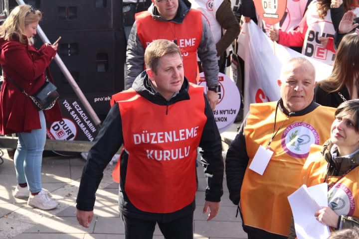 Eczacı Onur Özgüven, meslektaşlarıyla birlikte eczacılık mesleğinin onuru ve hakları için yürüyüşte. Bu kare, sadece bir an değil, bir duruşun simgesi…