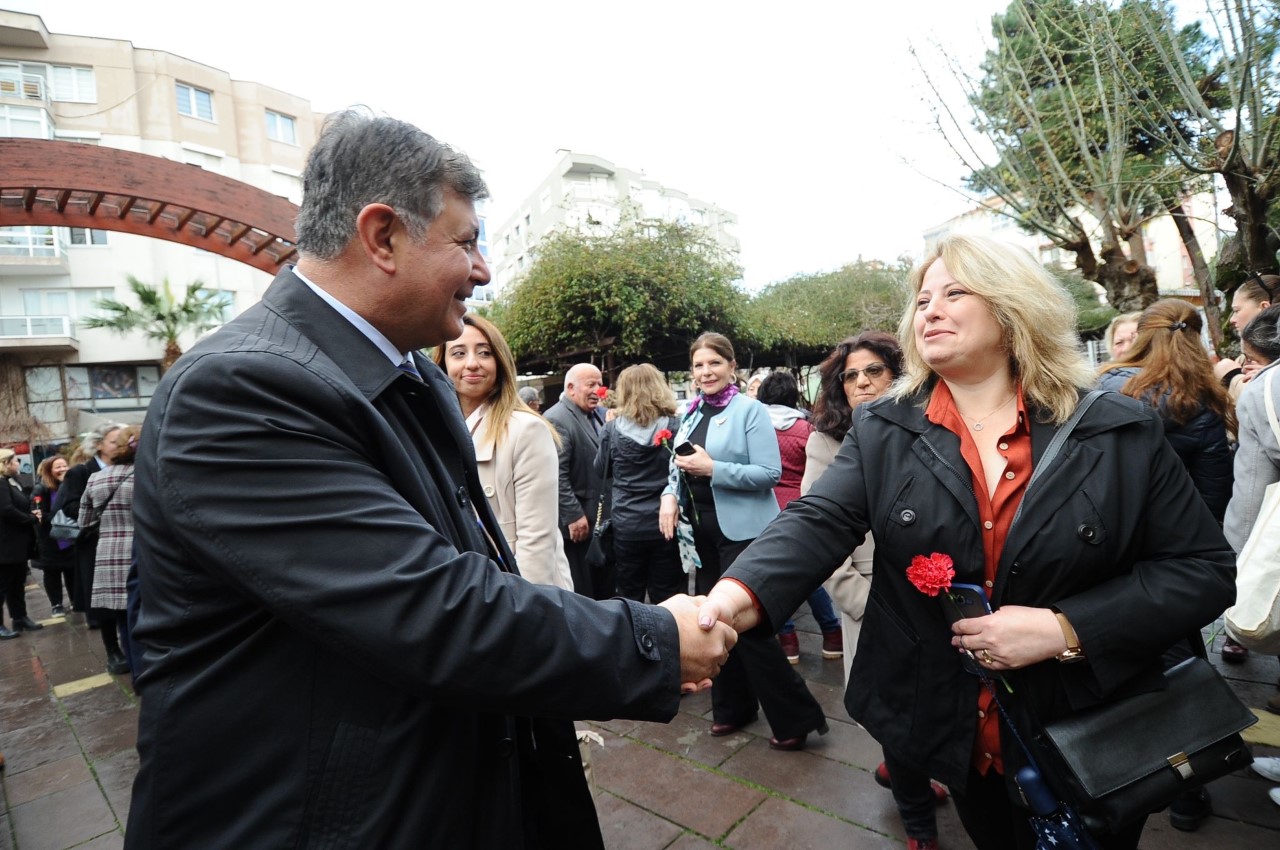 Anma programında konuşan Karşıyaka Belediye Başkanı Dr. Cemil Tugay, Dünya Kadınlar Gününün kadın mücadelesinin bir simgesi olduğunu vurgulayarak, 8 Mart Dünya Emekçi Kadınlar Günü kadının ben varım, ben de insanım, ben de haklarım ve sorumluluklarımla bireyim, yurttaşım; emeğim ve alın terimle bugünü ve yarını kuranım demesinin simge günüdür. Hiç kuşkusuz kadınların bunu dillendirmesi, kabul ve saygınlık görmesi, ahlakta, vicdanda, yasada ve yaşamda karşılık görmesi kolay olmamış; büyük mücadeleleri ve bedel ödemeleri gerektirmiştir. Bu tarihi yazan bütün kadınları saygı ve minnetle selamlıyorum. Elbette yaşamımı belirleyen annemi ve değerli eşimi de, kişisel bir değerbilirlik ile anıyor ve selamlıyorum ifadelerini kullandı.